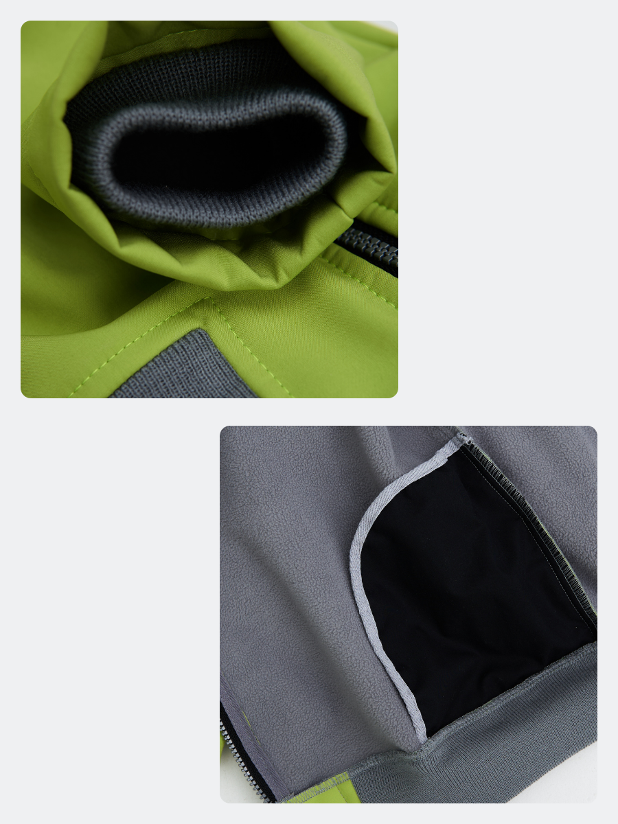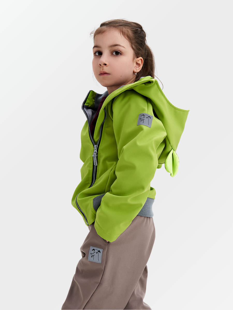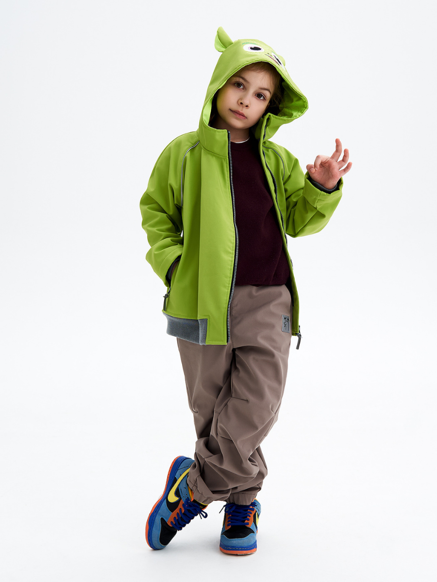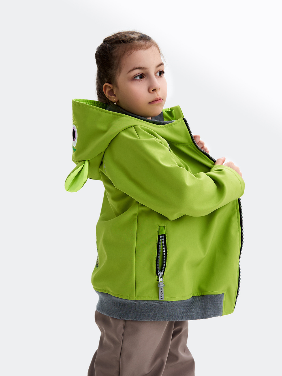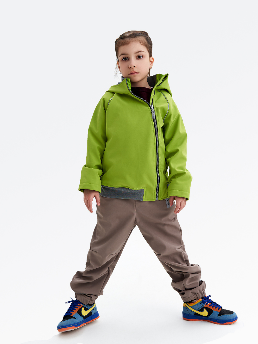 Внутренний воротник из вязанного полотна защищает шею ребенка от ветра, а внутренняя защитная планка у косой молнии обеспечивает защиту от продувания и от защемления подбородка.